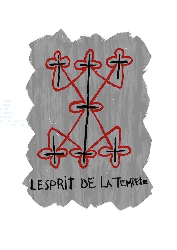 In Vanuatu we have spirits for different types of nature. The spirit of rain, sun, thunder etc but this one is the spirit of the cyclone. Esprit de la Tempete can tell the village people the cyclone is coming so they can make preparations to stop the cyclone.
