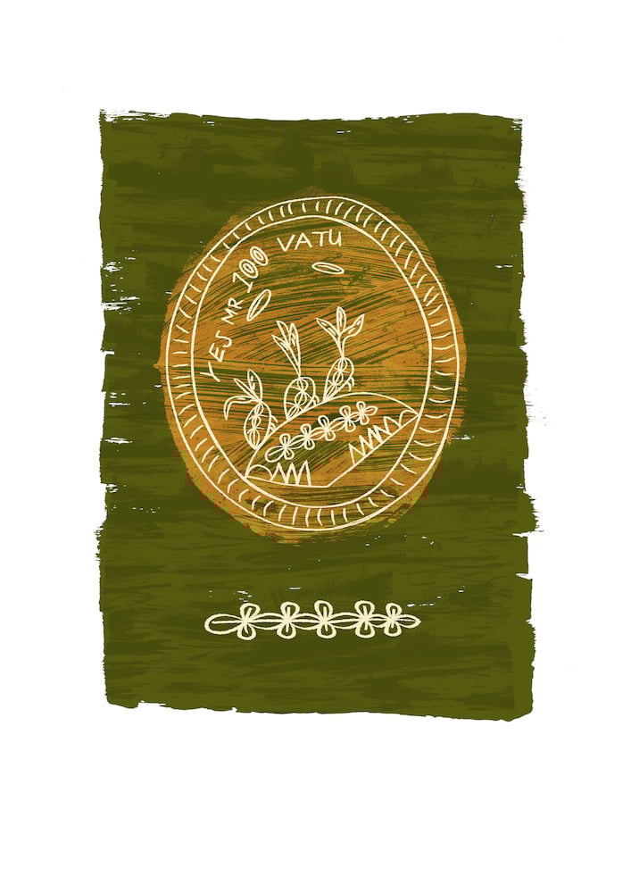This is a light hearted homage to the 100 Vatu coin that would equate to about a dollar depending on the exchange rate. 150 vatu can buy you a ride on a local bus to anywhere you want in Port Vila. 300 vatu to the outskirts.